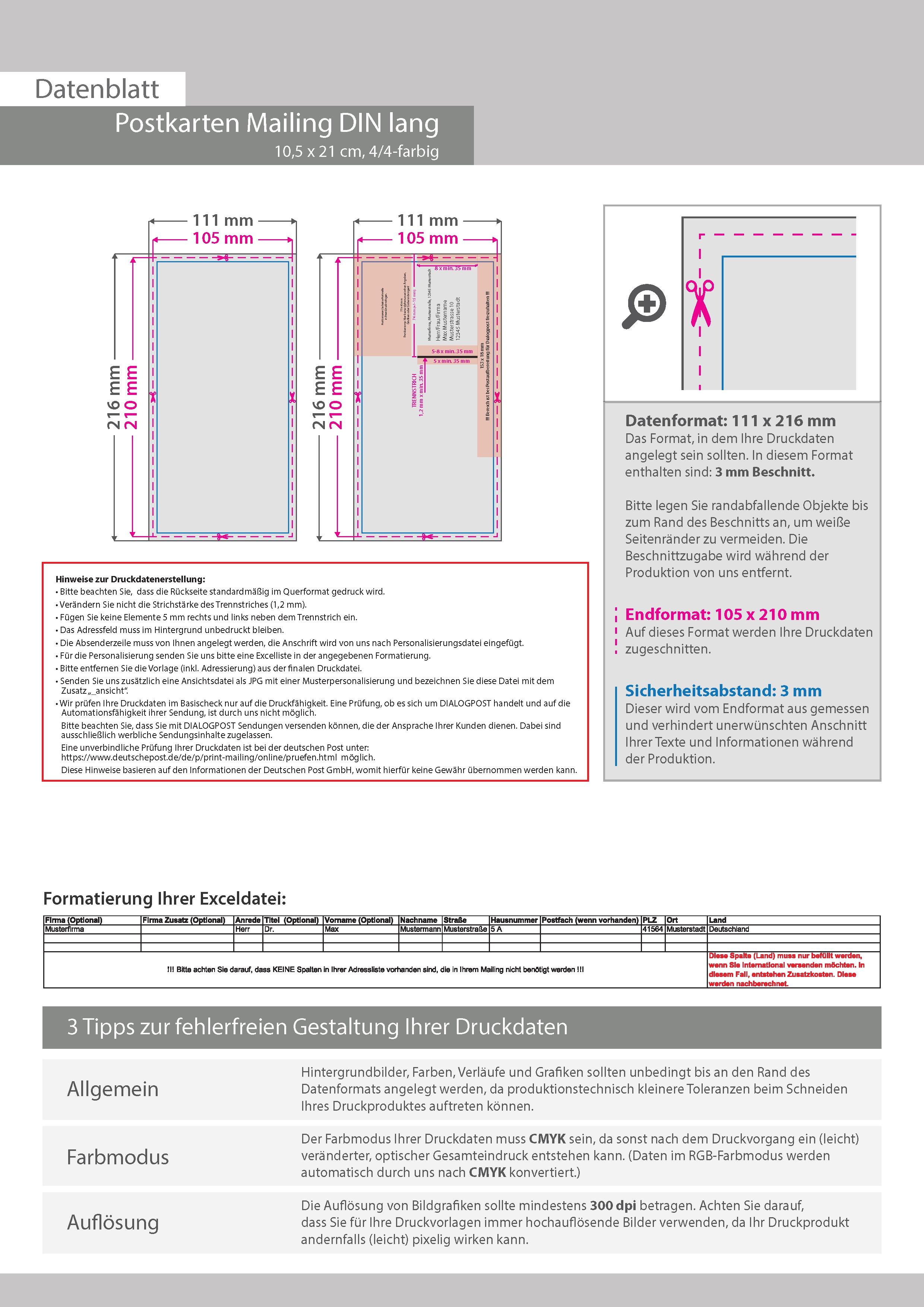 Postkarten-Mailing DIN lang (10,5 cm x 21,0 cm)