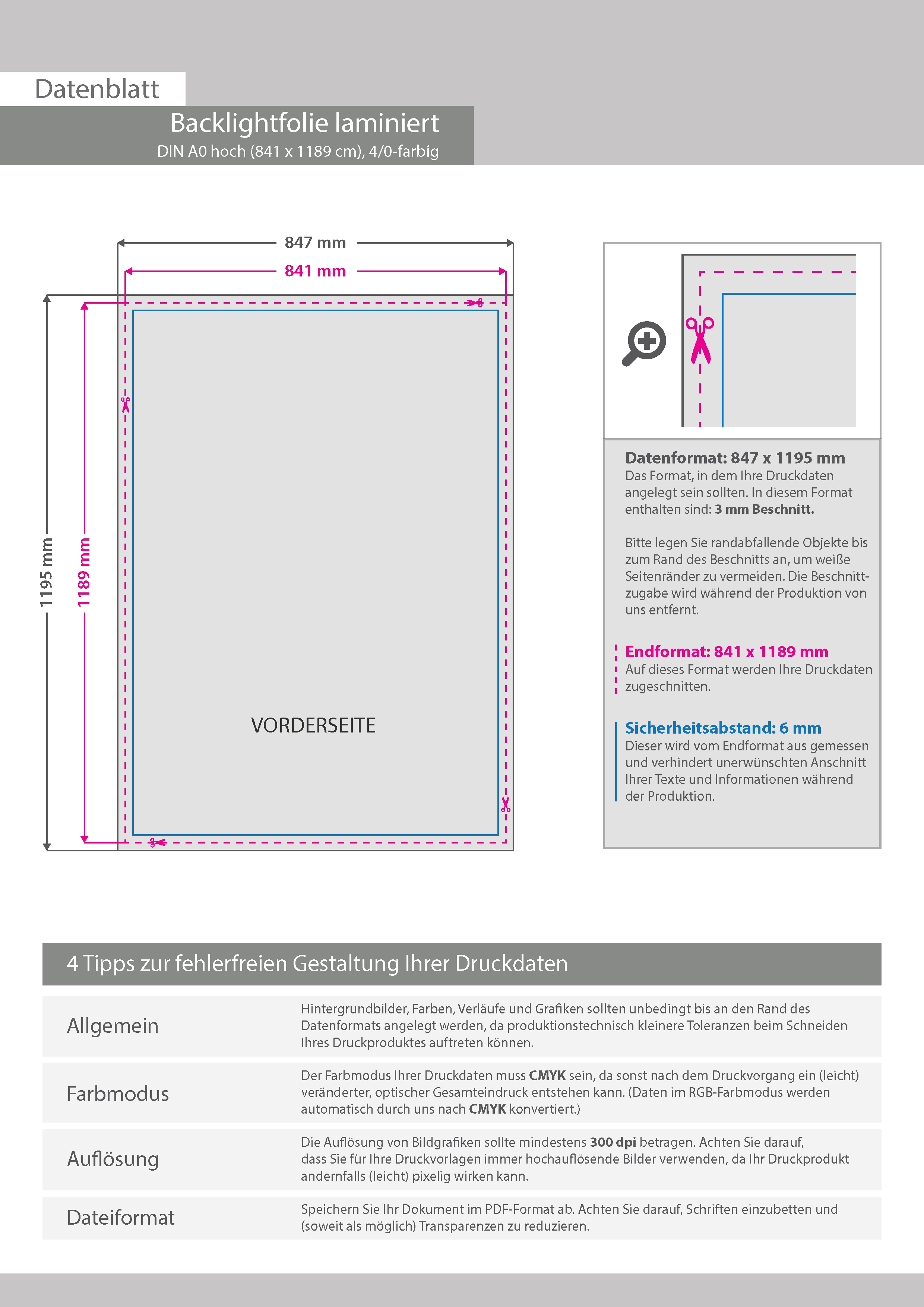 Hochwertige Backlightfolie laminiert, 4/0-farbig bedruckt, DIN A0