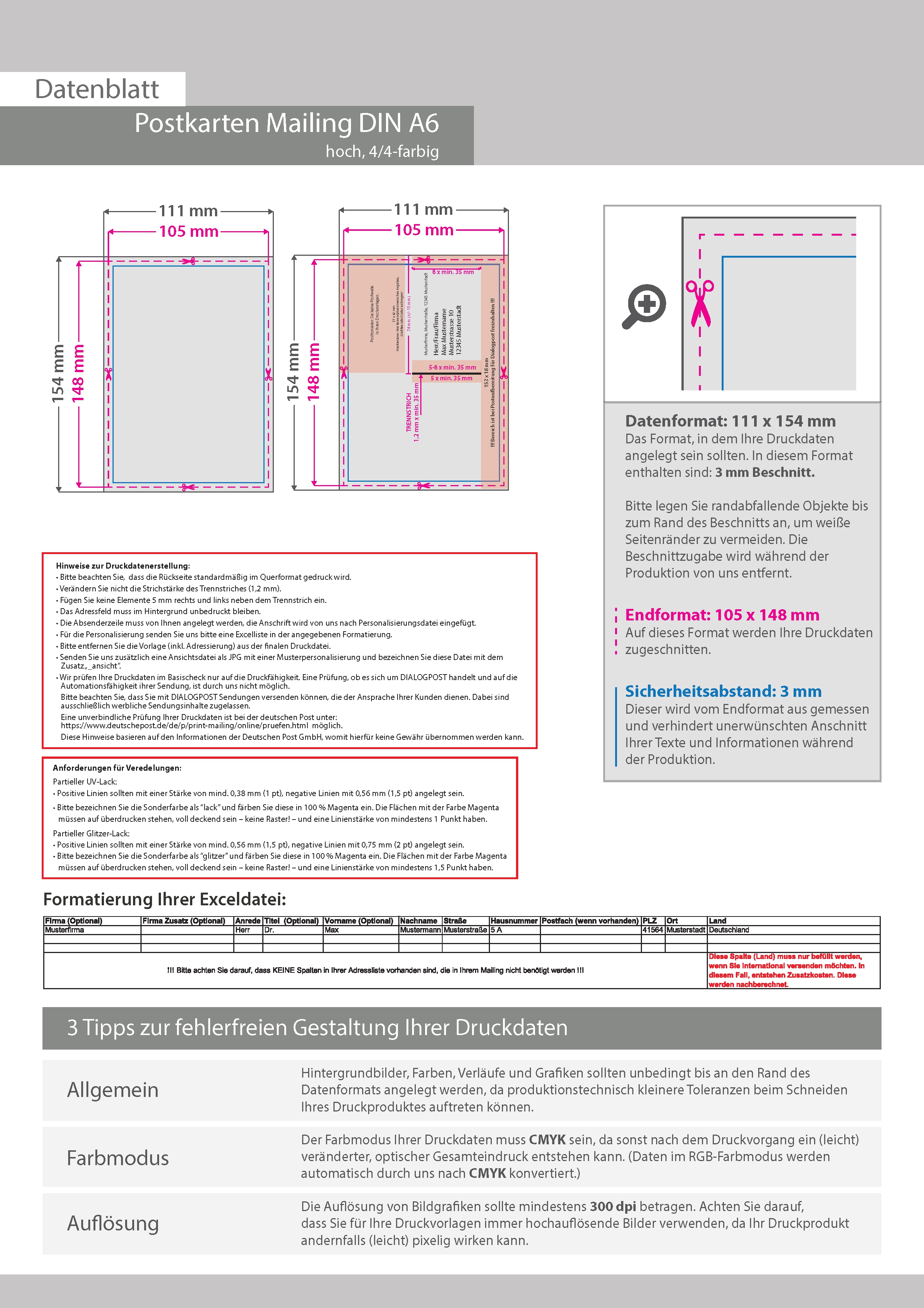 Postkarten-Mailing DIN A6 (10,5 cm x 14,8 cm) mit Mattfolie kaschiert