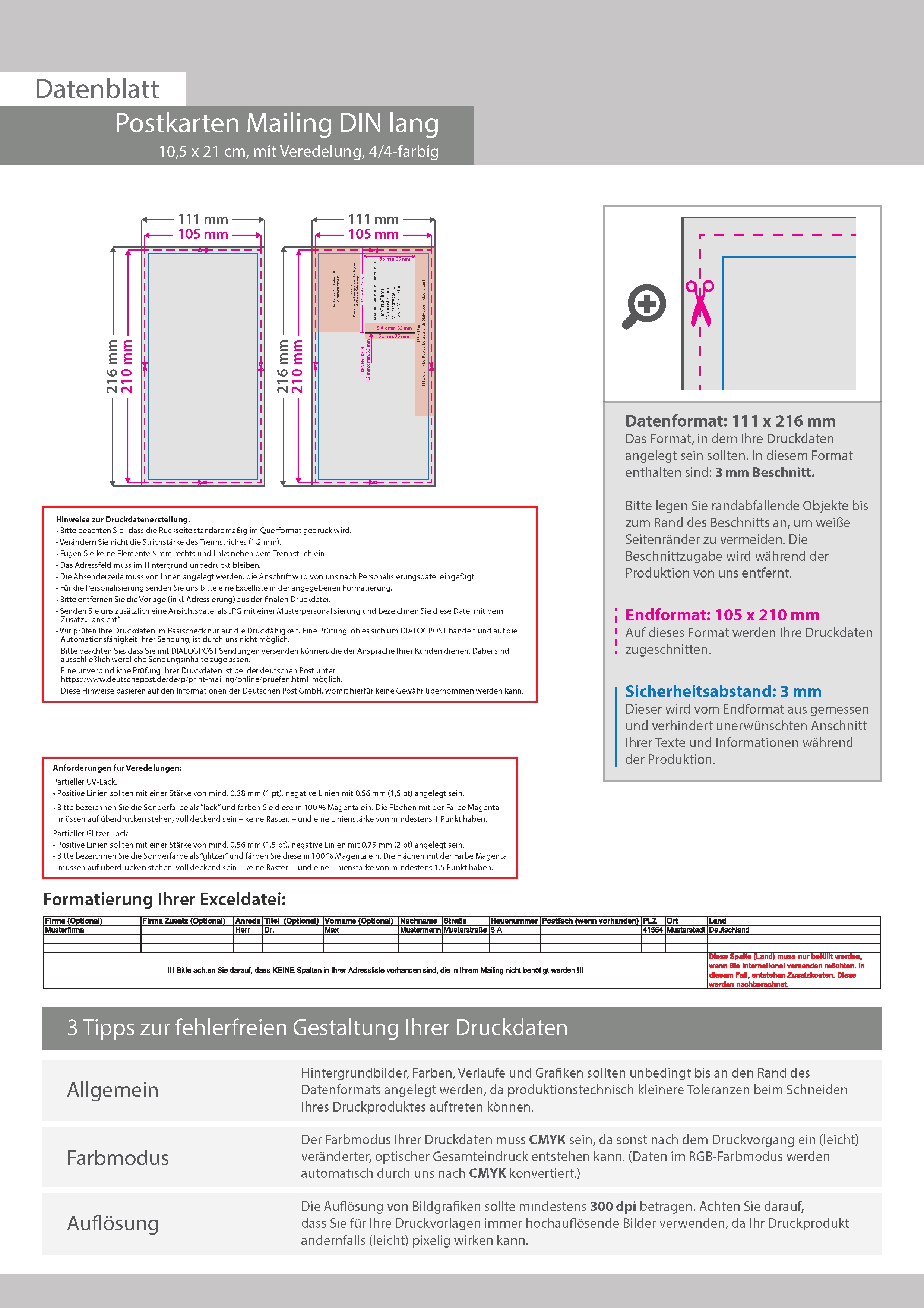 Postkarten-Mailing DIN lang (10,5 cm x 21,0 cm) mit Heißfolienprägung Silber