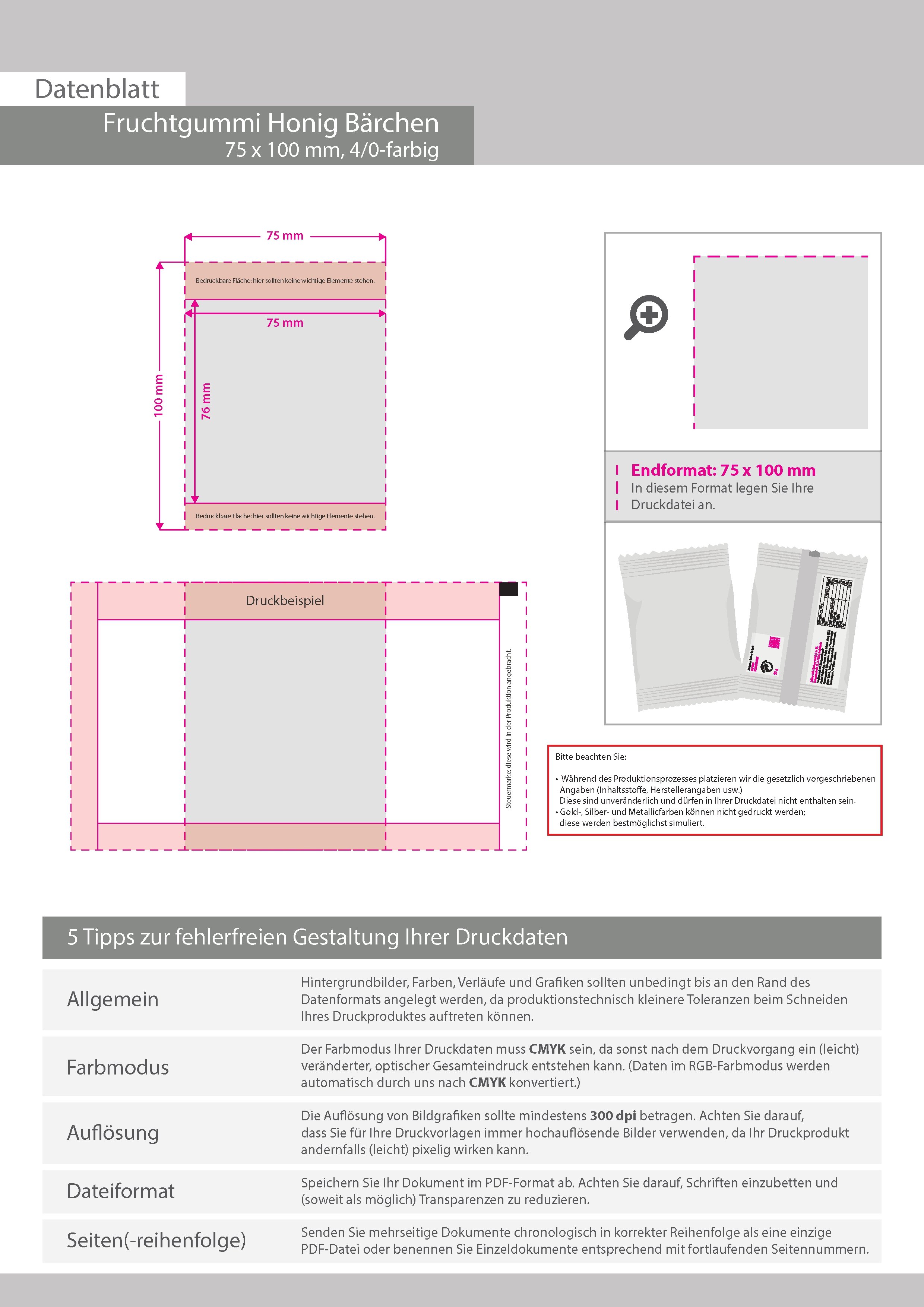 Fruchtgummi-Tütchen 20g Honig (Form: Bärchen), 4/0 farbig einseitig bedruckt