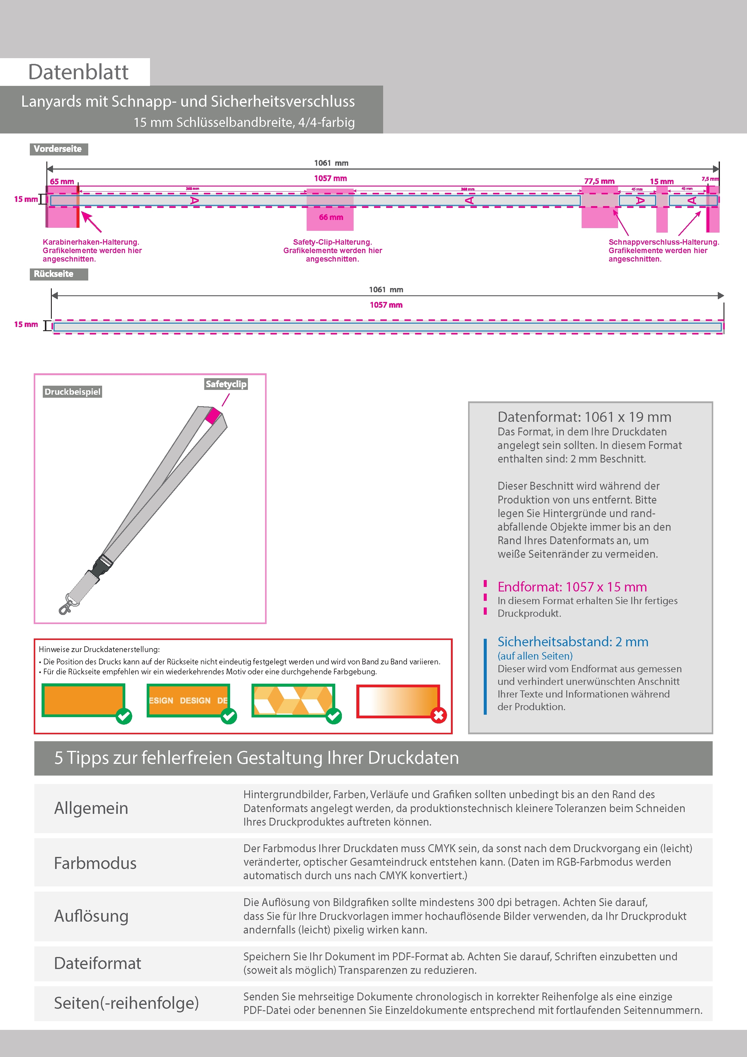 Lanyards mit Schnapp- und Sicherheitsverschluss, 15 mm Schlüsselbandbreite, 4/4-farbig beidseitig bedruckt