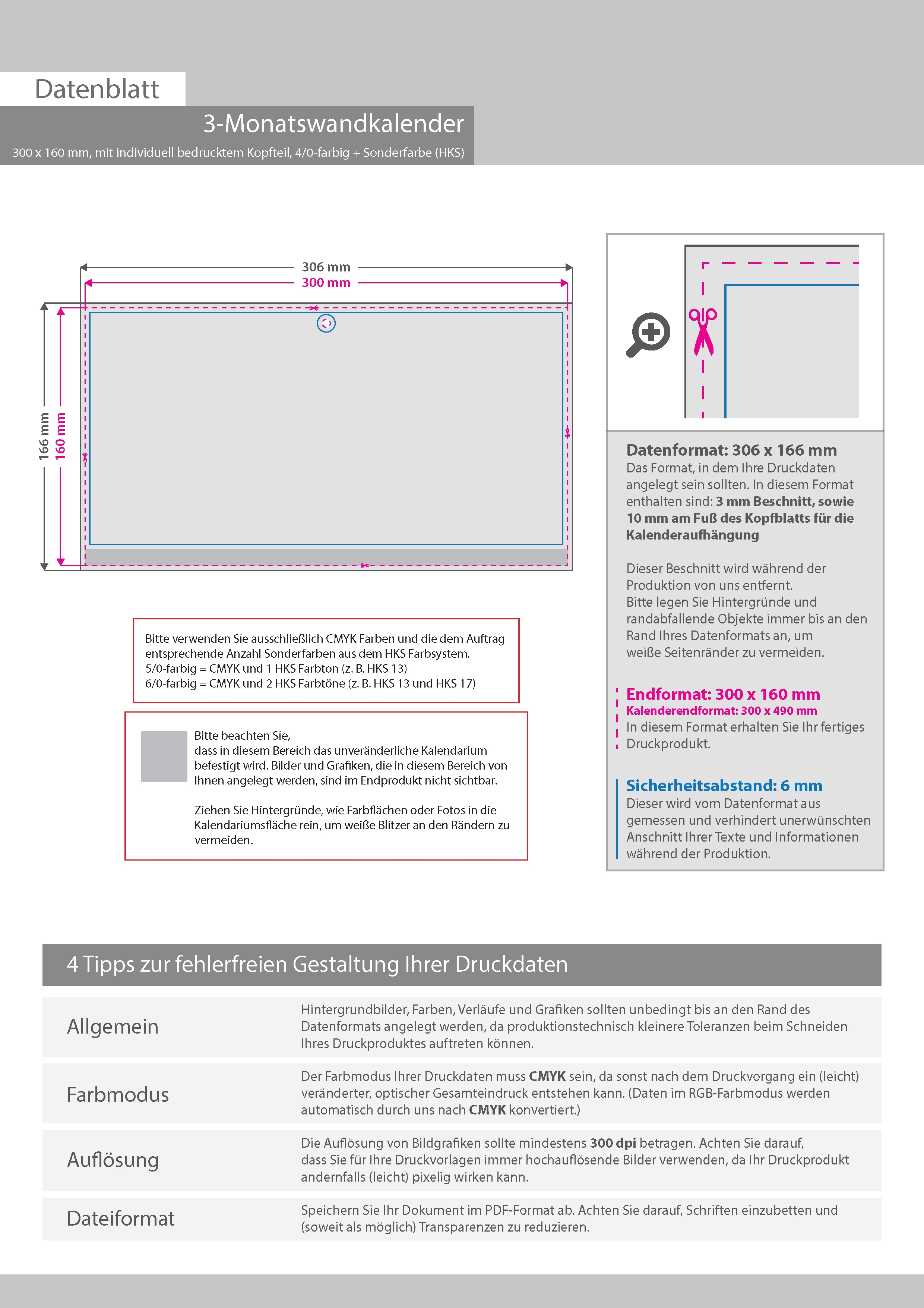 3-Monatskalender mit individuell bedrucktem Kopfteil (6/0-farbig CMYK + 2 Sonderfarben)